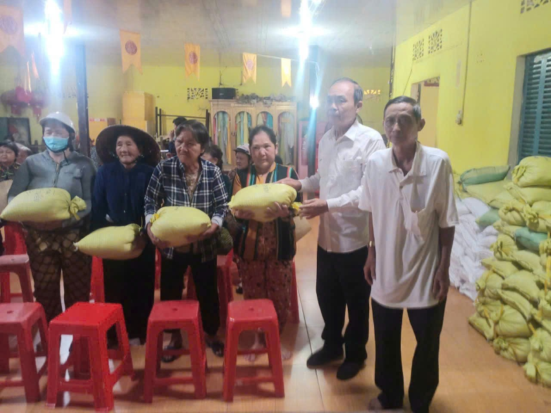 Ông Lê Văn Trung, Chủ tịch Hội Hữu nghị Việt Nam - Thái Lan tỉnh phát quà cho bà con nghèo tại ấp Sua Đũa, xã Bình An, tỉnh An Giang.